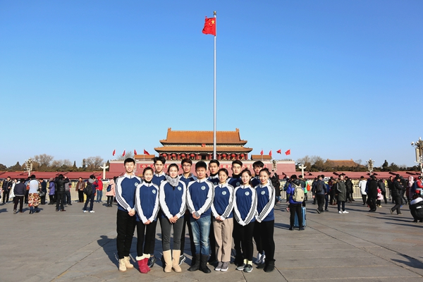 虽然天气寒冷,但师生们心潮澎湃地注视着天安门前的五星红旗,大家的爱国热情达到了极点。央视春晚临时党支部书记薛亮在天安门前带领大家见证了2018年第一次由中国人民解放军仪仗队完成的首个升旗仪式,并重温了中国的发展历程,回顾革命艰辛岁月,他饱含深情的讲述让同学们深深体会到了革命先烈的抗战热情和无畏的决心,让每一位学生干部都受到了强烈的心灵震撼。随后大家怀着崇敬而肃穆的心情,伫立在人民英雄纪念碑前深切缅怀烈士。大家重温那段难以忘怀的历史,聆听着烈士们感人至深的英雄事迹,感受革命先辈艰苦奋斗与无私奉献的革命精神,共同悼念为了中国解放和繁荣而英勇牺牲的烈士。