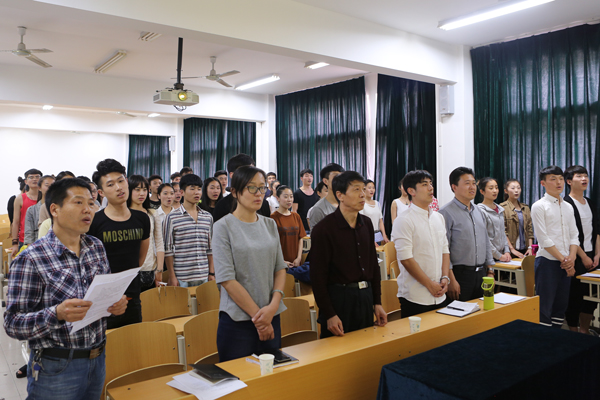 主题团日活动在《中国共产主义青年团团歌》中拉开序幕。紧接着青年团员代表赵才惠、孟雪、何浩先后发言,他们围绕着“荣誉·奉献·梦想”讲述自己的学习和生活的经历,用自己亲身经历诠释着珍惜荣誉、勇于奉献、追逐梦想的意义。他们慷慨激昂的演讲,给广大团员青年传递着一股强烈的正能量。随后一班团支书张薇伟进行了“提升班级活力”的活动畅想,二班团支书葛瑞恒分享了“打造第二成绩单”的计划。