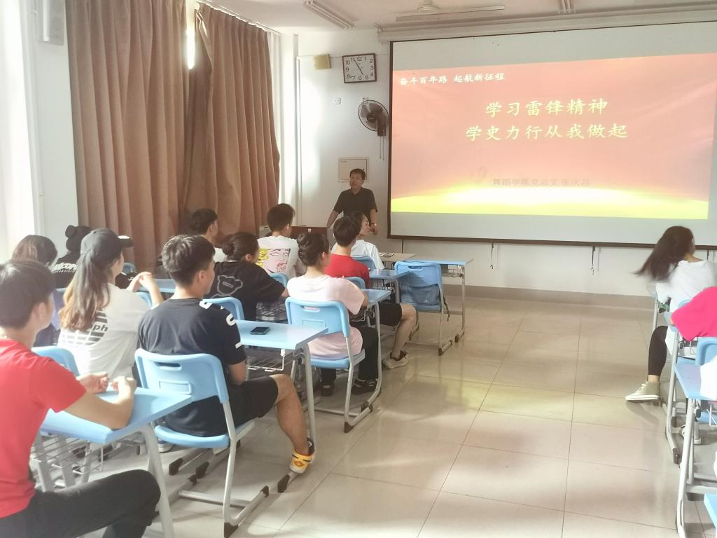 奋斗百年路,启航新征程。为庆祝中国共产党成立100周年,扎实开展党史学习教育,进一步重温“雷锋精神”,奉献他人、提升自己,6月23日下午,舞蹈学院党总支书记张庆昌在双馨楼202教室为在校全体学生党员、入党积极分子、学生干部开展了“学习雷锋精神,学史力行从我做起”为主题的党课。