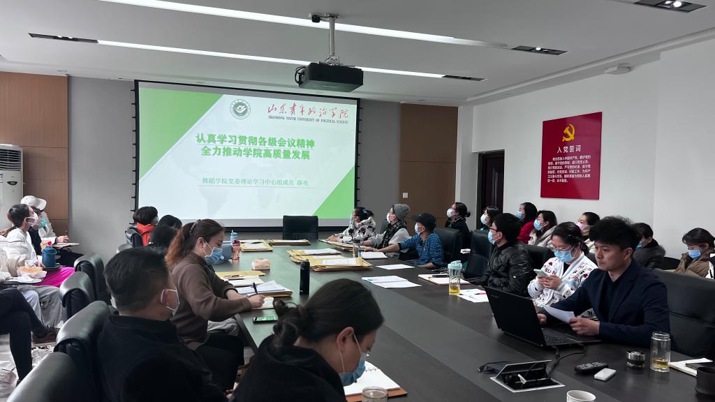 3月17日,舞蹈学院理论学习中心组(扩大)在双馨楼201会议室集体学习教育理论。会议由学院党委书记张庆昌主持,理论学习中心组成员薛亮领学解读,中心组成员和全体教师参加。