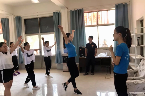 实践活动在瑶坡村文化活动室举行。尽管文化活动室刚投入使用,各类设施不够完善,但服务团成员克服困难,仍耐心细致对学员进行广场舞指导。学员们也是十分配合,满怀热情学习动作,遇到问题及时提问。在第一书记的关心和学员们的配合下,服务团一上午就顺利完成了广场舞指导任务。