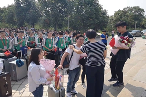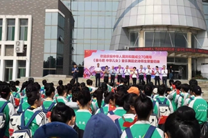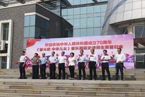 在欢迎仪式上,参演学生代表邵婉宁和教师代表王斐分别进行发言,与大家分享这三个多月来参与《奋斗吧 中华儿女》排演工作的心得与收获。在校学生为参演师生献花,表达深深的敬意。在温馨而热烈的氛围里,全体人员挥舞国旗,共唱《我和我的祖国》。
