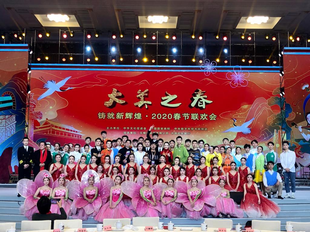 文化连结传承,书画陪伴生活。2020年1月12日,由中华文化促进会、中国国家画院、中央数字电视书画频道主办的“铸就新辉煌——2020‘大美之春’春节联欢会”在北京人民大会堂隆重举行,舞蹈学院圆满完成此次演出任务。