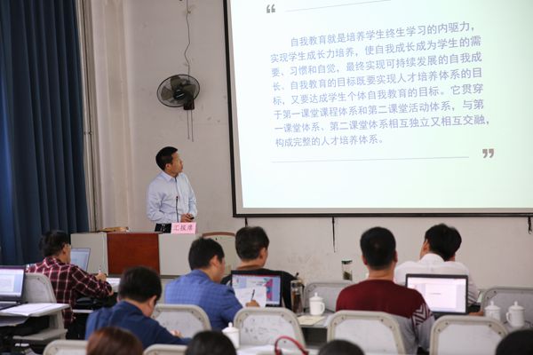 团总支书记赵金怀说第二课堂活动体系,党总支书记张庆昌说自我教育体系与青年政治人才培养,院长傅小青说人才培养质量评价体系。