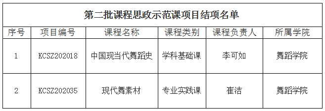 根据学校《关于组织第二批课程思政示范课项目结项验收的通知》(山青院教通字(2021)100号),舞蹈学院教师李可如主持的《中国现当代舞蹈史》课程、崔洁主持的《现代舞素材》课程顺利通过结项验收。