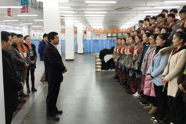 在我院师生的排练过程中,山东省教育厅、山东省代表团及学校领导和各部门及老师给予了大力的支持与帮助。山东省教育厅副厅长张志勇,省教育厅体卫艺处处长任兰平、副调研员张端,山东青年政治学院党委副书记刘先义莅临指导。而我院师生为准备此次展演活动,放弃与家人共度新春佳节的宝贵时光,克服种种困难,按时返校排练。有的同学腊月二十六刚刚结束北京春晚的录制工作回到家中,又订好大年初二的车票返校排练,假期缩短至仅仅一周。其中,家住山西运城农村的石皓文离校最远,他在大年初一就到县城打听是否通车,买好初二的年后第一班车票,可谓跋山涉水赶回济南。应届毕业生肖君妍、张媛、杜瑞、高恒、赵浩、郭嘉星、杨苑文、高亚男、仵艺璇等同学本来已经定好年后开始实习、准备参加工作,但接到通知后立即跟单位请好了假,于大年初二按时返校。同学们精神饱满,一丝不苟,全身心投入到训练之中,有力地展示了我院师生的团结向上、不畏困难、甘于奉献、开拓创新的精神风貌。