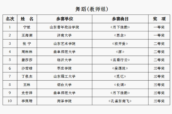 近日,山东省第七届高校音乐舞蹈专业师生基本功比赛在山东艺术学院落下帷幕。舞蹈学院师生参加并喜获佳绩。