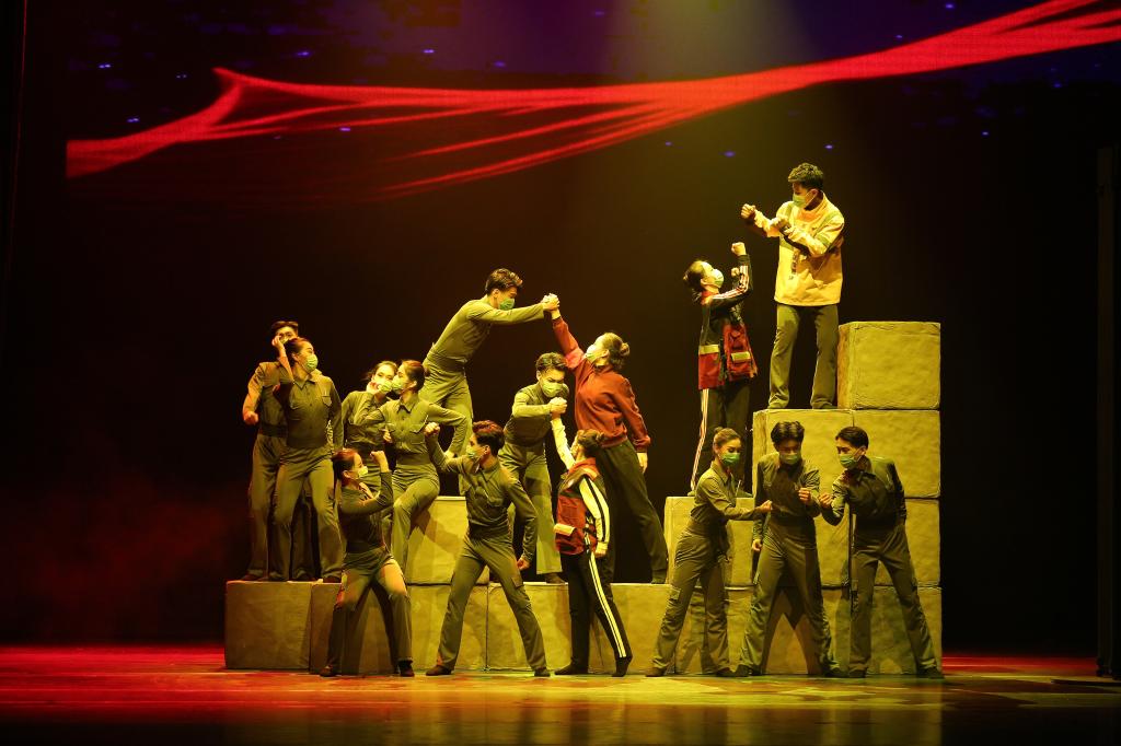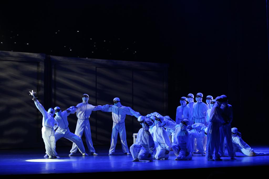舞台上的一幕幕,正是真实地发生在身边的抗疫故事,让观众重回现场,重温感动。医护人员、人民警察、武警战士、基层工作人员、志愿者,来自不同领域的人们为了同一个信念,纷纷投入到抗疫战争中贡献着自己的力量。