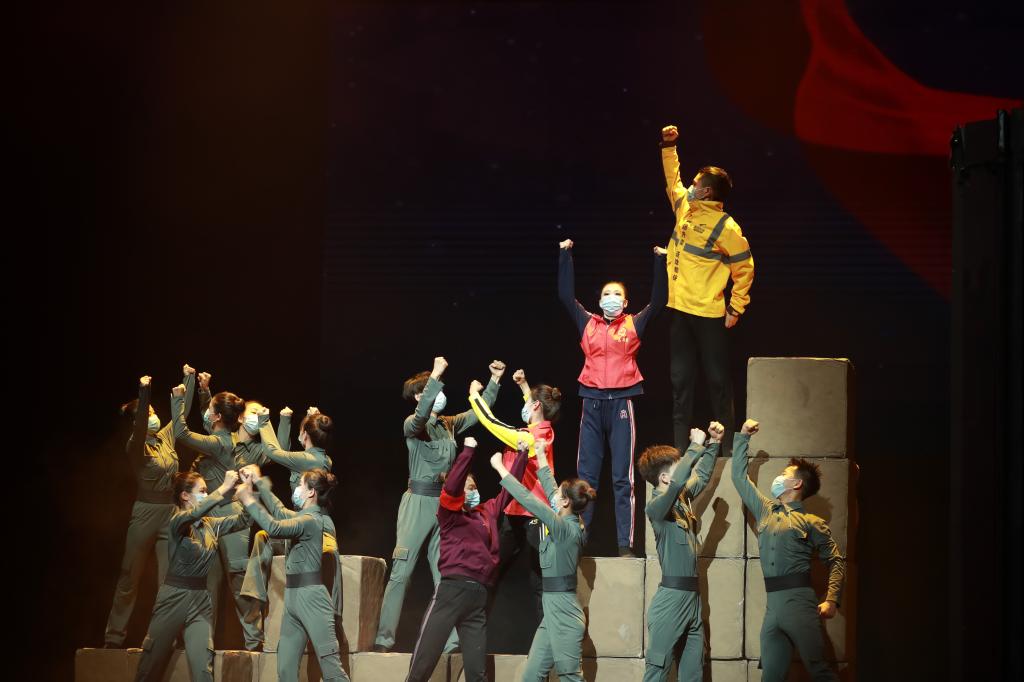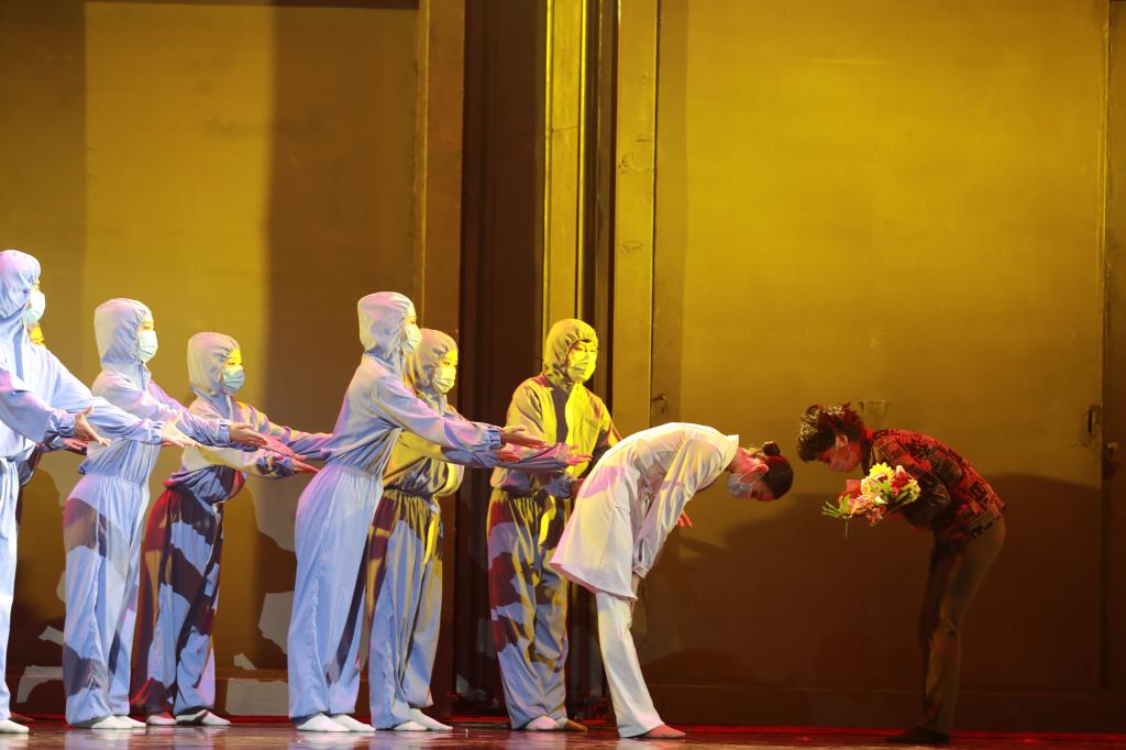 舞台上,演员们不辜负之前在排练厅的整日坚守,把那一份份寄托、一份份热血全部都挥洒在了舞台上。他们用精彩的舞蹈演绎了在抗疫时感人至深的故事,将伟大的抗疫精神传播给了现场观众,大家都被剧情牵动心弦,每个人眼含泪水,被演员们的精彩表演所深深感染和震撼。