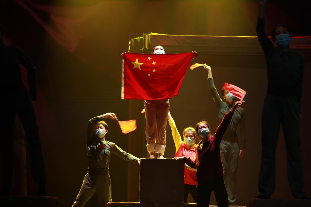 从复排到演出用时不到两个月,可见任务之艰巨,时间之紧迫。排练是非常辛苦的,但演员们从未放松,他们每天排练耗尽体力难得休息,即便是汗流浃背。每个人都在极限中次次突破,用每一个眼神、每一个动作、每一次呼吸表现当时那种不畏艰难、无私奉献的抗疫精神。
