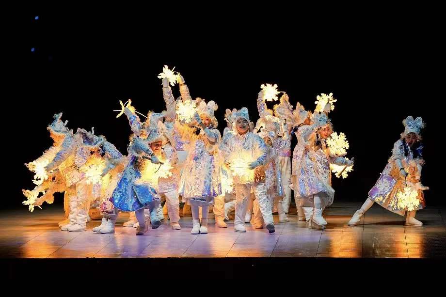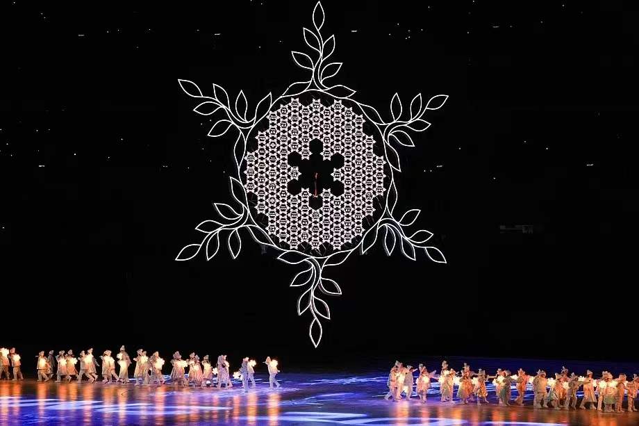 由刘辉、李晨雷所在的编导团队编排的开场表演《点亮》,24名孩童手提雪花花灯,在“冰面”上尽情嬉闹、舞蹈。随着表演进行,孩子们在不同位置用手中的小花灯点亮了场地上的“冬”字会徽,“冬梦”从纯色冰晶幻化为斑斓的彩色,舞台和观众席上两万只灯笼随之点亮,闭幕式在一片绚烂灯火中拉开帷幕……