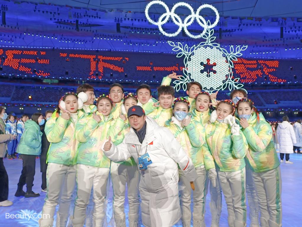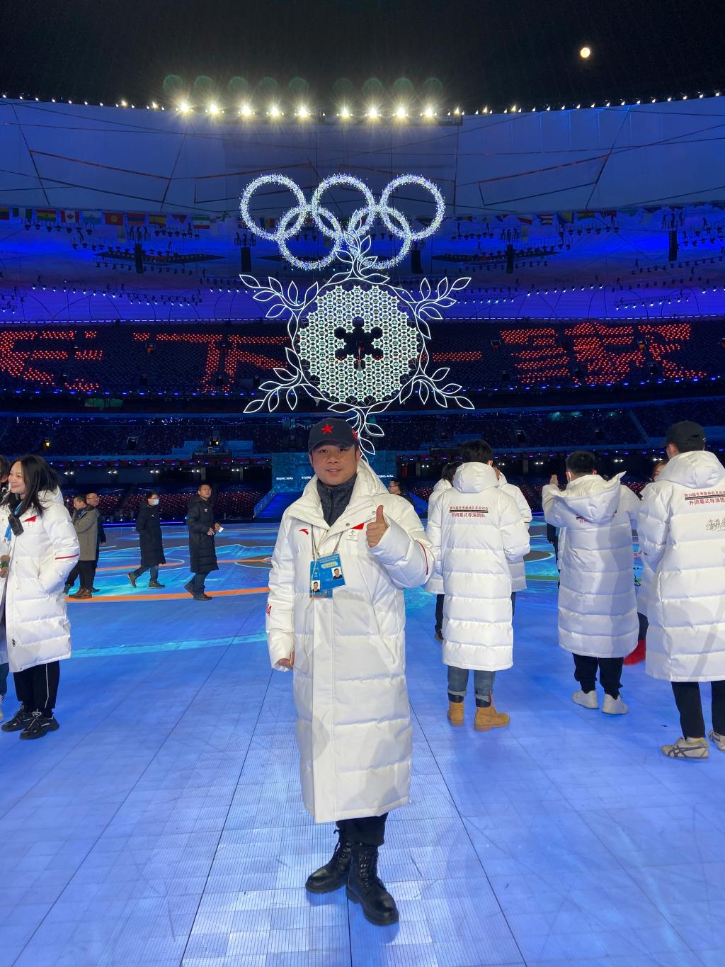 “为学校争光,为国家做贡献,是我们义不容辞的事!”刘辉、李晨雷于2021年10月中旬到达北京,参与冬奥会开闭幕式的节目编创与排练,在北京展开了长达四个月的封闭式排练。刘辉说:“来到北京很有缘分遇到山青的师弟,我们山青毕业的来了两个舞蹈编导。刚到北京就忙着开会,整整在北京开了一个月的会,讨论创作问题和细节,几乎没有休息一天时间,过年也在北京和演员们一起过的。作为一名老党员,我能参加北京冬奥会开闭幕式的工作,为我的国家做一点微不足道的贡献,我非常的荣幸。在校所学的理论和专业也始终指导着我现在的实践,我会继续努力加油,因为我是永远的山青人!”