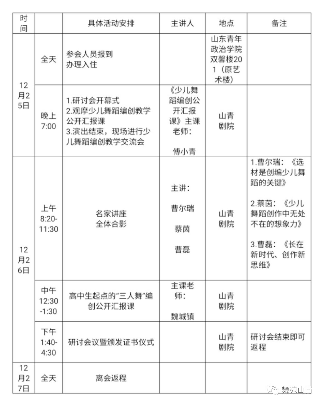 2018年全国少儿舞蹈编创教学研讨会日程计划