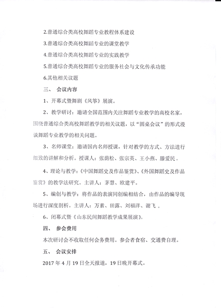 关于举办2017年全国普通综合类高校舞蹈专业教学研讨会的通知