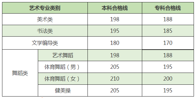 山东省2021年普通高校招生美术类、文学编导类、书法类、舞蹈类专业统考合格分数线