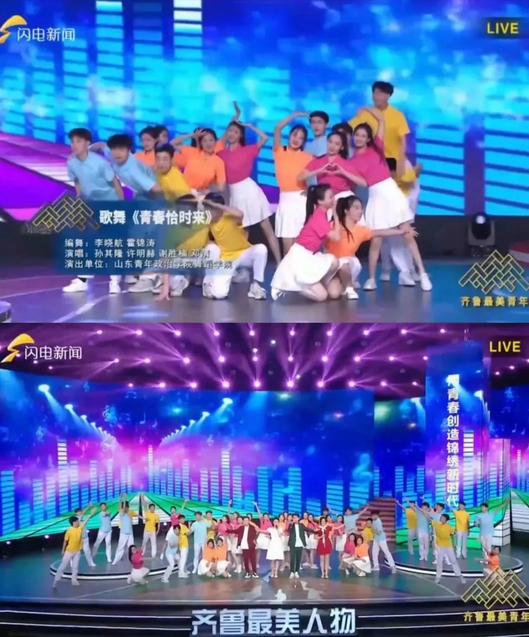 青春恰时来,与祖国同在,逐梦路上不言败,未来有我们更精彩,我们与世界同在。近日,由山东省委宣传部、共青团山东省委、大众报业集团、山东广播电视台联合主办的2023年“齐鲁最美青年”发布仪式在济南举办。山东青年政治学院舞蹈学院的师生受邀参加此次发布仪式舞蹈节目的演出。