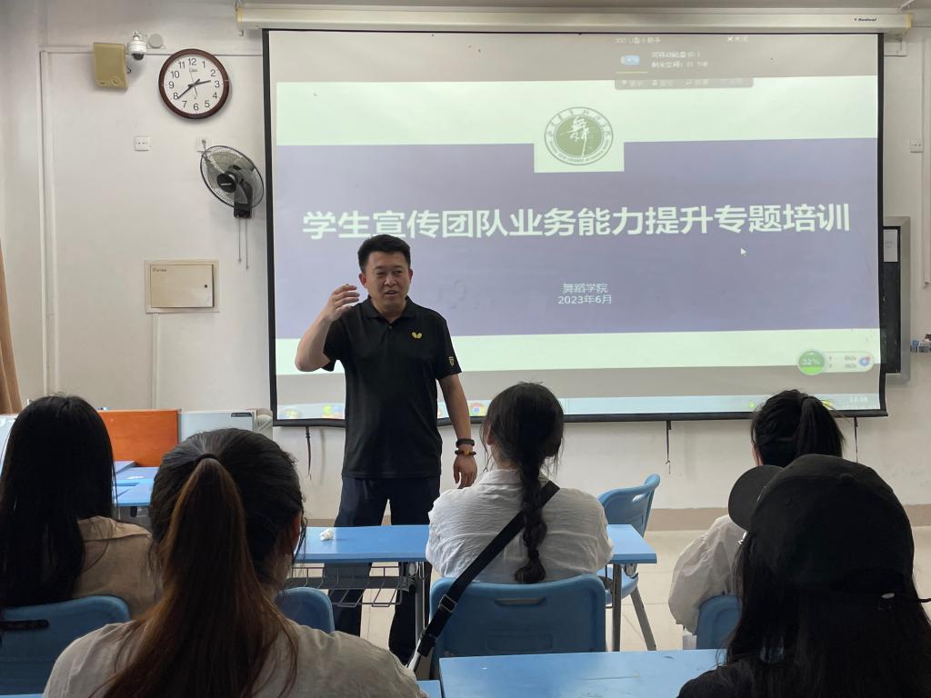 为进一步提高舞蹈学院学生宣传团队的整体素养和业务能力,提升学院新闻宣传工作水平,近日,舞蹈学院于双馨楼204组织开展学生宣传团队能力提升专题培训。舞蹈学院党委副书记赵金怀、学生会宣传团队全体成员参加,培训由学院辅导员郑心玥主讲。