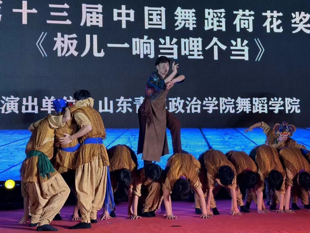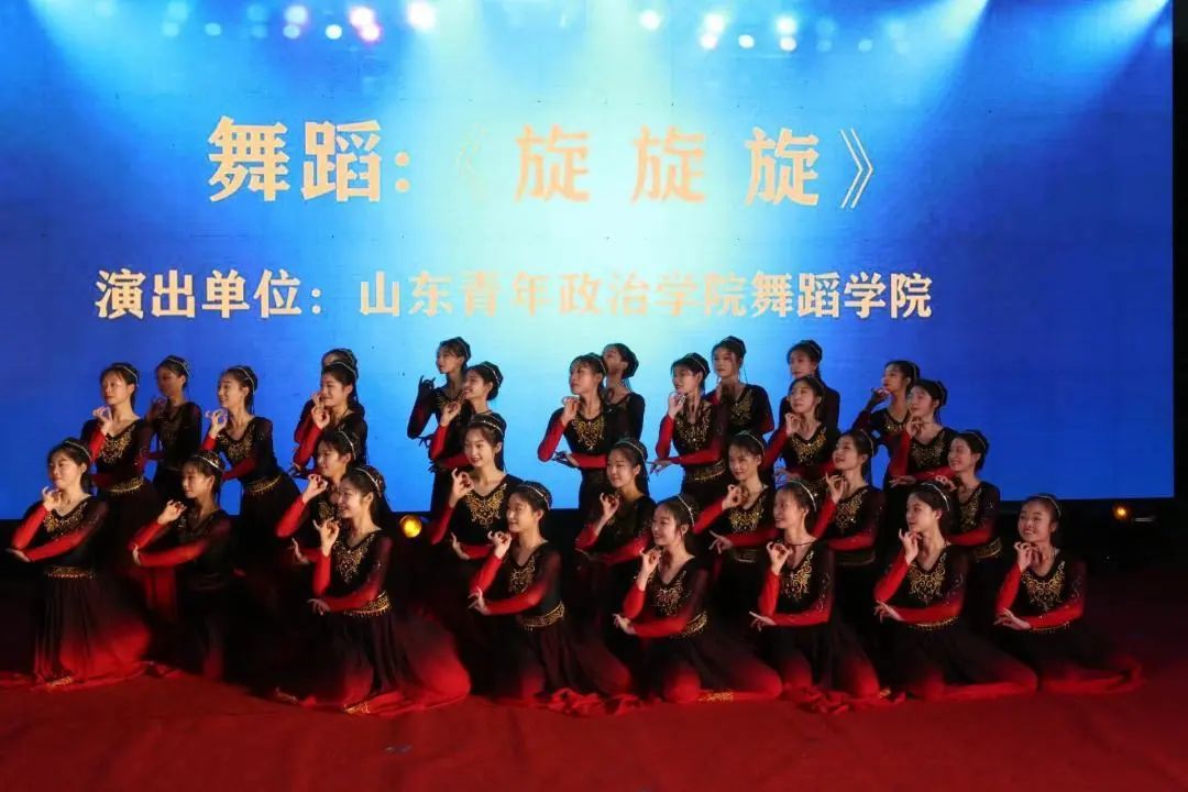 在此次文艺演出中,舞蹈学院55名同学参与了开场舞《旋旋旋》、群舞《板儿一响当哩个当》两个节目。待夕阳西下,展演在独具地域特色的维吾尔族舞蹈《旋旋旋》中拉开序幕,艳丽的服饰、动感鲜明的鼓点音乐,将技艺与美感结合统一,令人眼前一亮。学院原创作品《板儿一响当哩个当》以山东快书的形式,将“武松打虎”这段脍炙人口的民间经典故事以舞蹈表演的方式呈现给观众,使得台下观众连连叫好,掌声雷动。