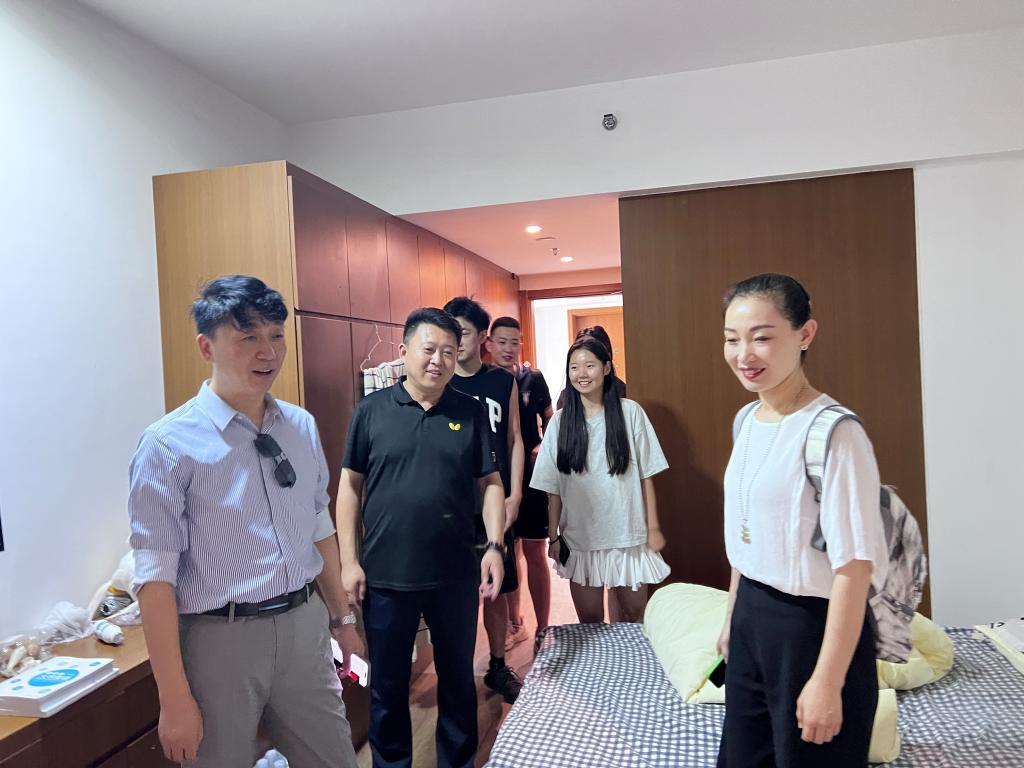 交流座谈后,傅小青一行实地考察了龙之梦演艺城、上海千古情艺术团下属各部门,并深入食堂、宿舍,切身体验同学们的吃住情况,聆听同学们的诉求,给予解决方案,对同学们进行了最亲切的慰问。