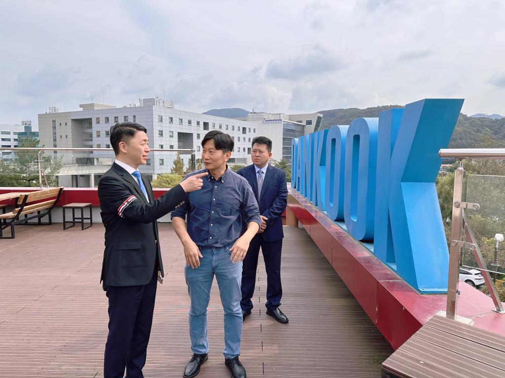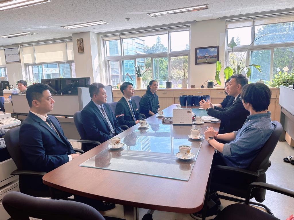 在韩国檀国大学访问期间,檀国大学国际交流处次长曹成铉等与访问团交流座谈,双方就加强学科平台、科研、人才培养、国际合作等方面进行了广泛的探讨,并就下一步签署相关合作协议形成了初步规划。