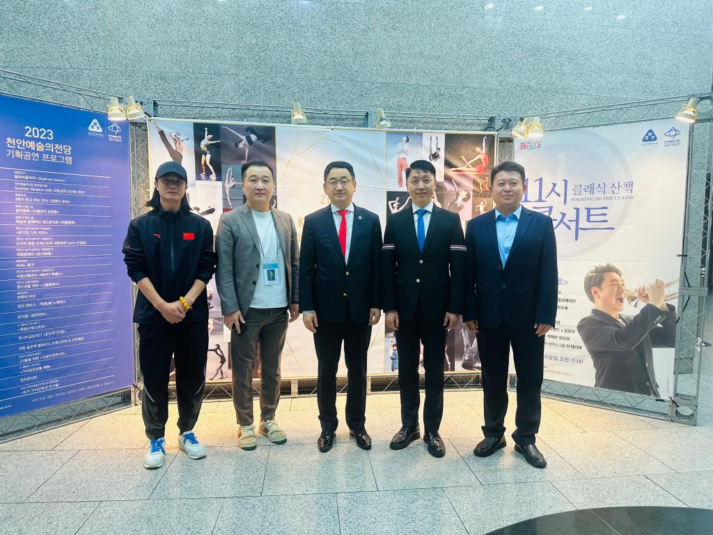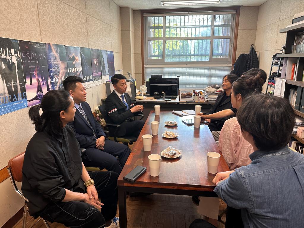 傅小青一行受邀前往天安市立舞蹈团与艺术总监金勇哲进行交流座谈,双方就舞蹈艺术作品的创作、韩国传统舞蹈的保护及发展、韩国新舞蹈的创作进行了深入探讨。