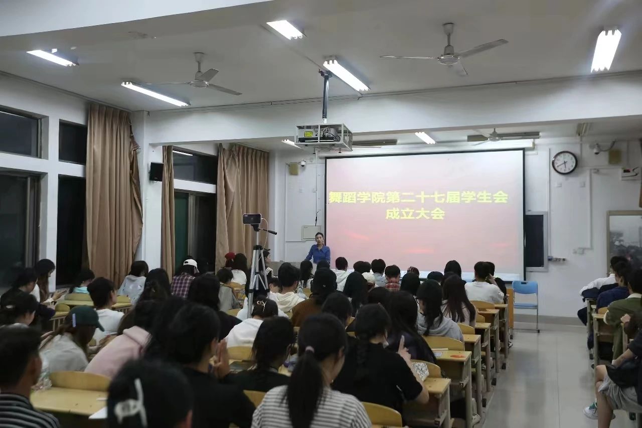 11月2日,舞蹈学院第二十七届学生会成立大会在双馨楼202举行,舞蹈学院党委副书记赵金怀,团总支书记、学工办主任冷咪及全体辅导员出席会议,学院第二十六届、第二十七届学生会全体人员参加,大会由辅导员傅蓉主持。