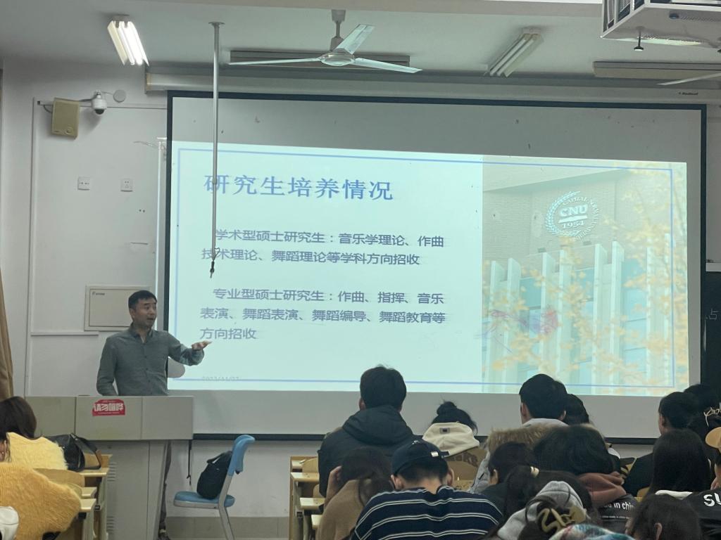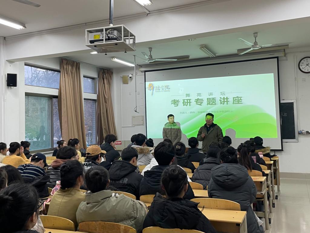 11月27日,舞蹈学院在双馨楼202教室召开2024届毕业生考研就业专题讲座,旨在帮助学生更好地确定职业生涯目标,激发学习斗志,解答同学们关于考研、就业的疑惑。讲座邀请首都师范大学音乐学院副院长胡伟担任主讲人,学院应届毕业生到场聆听。