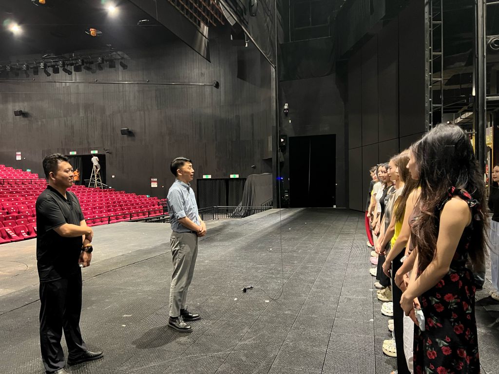 演出结束后召开会议与学生们进行了深入交流,傅小青高度赞扬了同学们的精彩演出,他指出,广东千古情涉及舞蹈种类之多、舞蹈难度之高都是一次全新的突破,对学生是一次专业的检验与锻炼,希望同学们传承发扬“乳娘精神”,除了高水平的专业演出外还要有高质量的作风。赵金怀对同学们的精神面貌予以充分肯定,他希望同学们要注重多元化学习,将所学知识运用到舞台实践中,时刻注意安全,确保艺术实践工作安全稳定,要注重创新意识培养,提升自身综合能力。