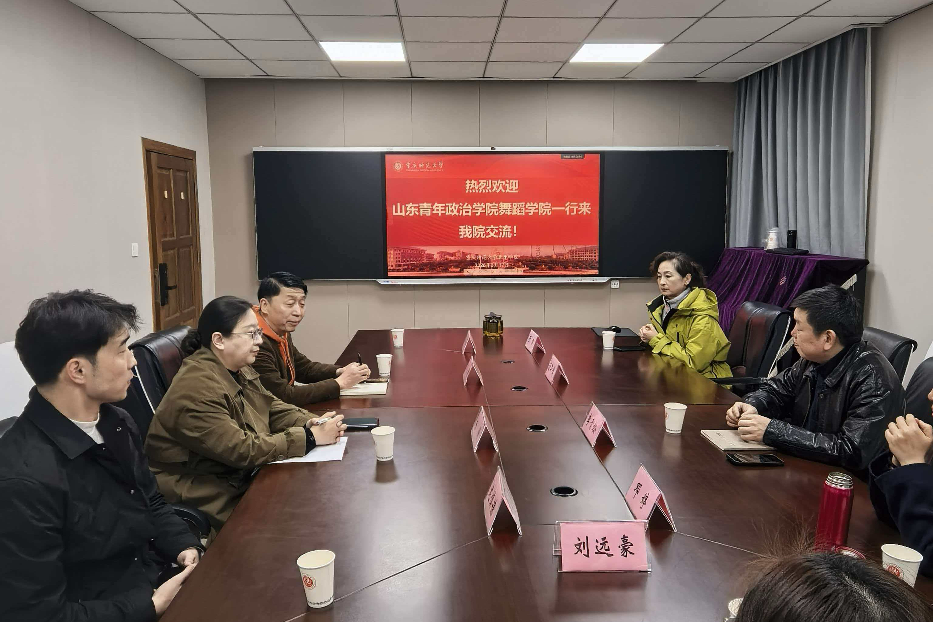汤斯惟全面介绍了重庆师范大学音乐学院的发展历程、学科布局、师资建设及应用型人才培养特色;教科办主任崔凤明围绕学科专业规划、课程体系优化、教学改革创新,以及校企合作落地、就业渠道拓展、社会服务成果转化等工作作详细阐述。傅小青结合舞蹈学院专业建设、学生就业工作现状与难点堵点,逐一请教人才培养方案优化、就业指导体系搭建、毕业生高质量就业等实操经验,并表示希望以此次交流为契机,借鉴对方先进理念与务实做法,破解学院学科建设、人才培养、就业提质中的瓶颈问题。双方围绕核心议题坦诚沟通、经验互传,夯实了校际交流基础。
