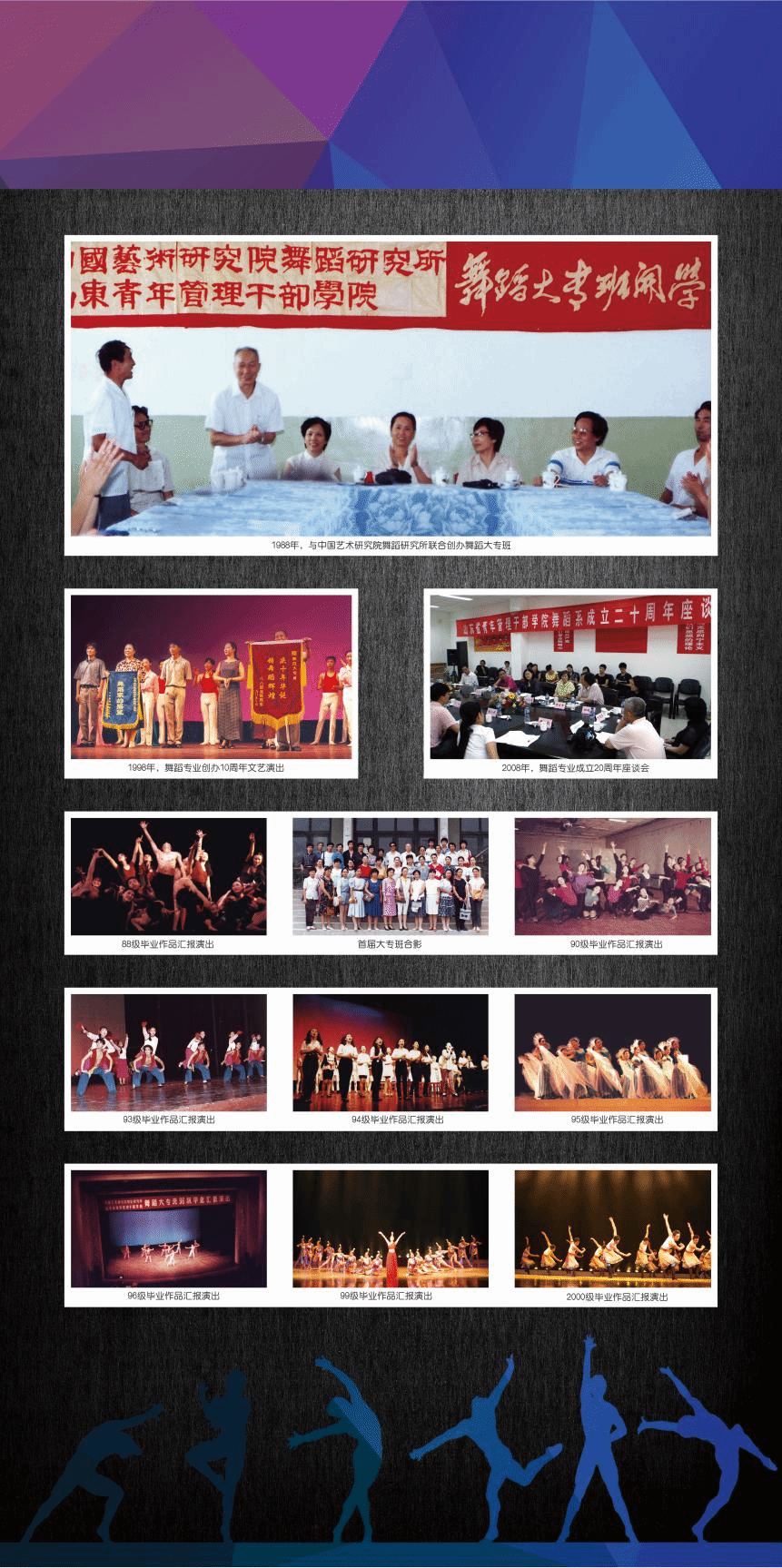 学院始终坚持人才培养根本任务,积极进行教学改革,构建了“演编教评组”一专多能的基层应用型舞蹈人才培养模式。其中,“演”指舞蹈表演,“编”指舞蹈编创,“教”指舞蹈教学,“评”指舞蹈评论,“组”指活动组织。该模式创造性地运用“大类招生宽口径培养+专业分流特色培养”的两段式培养,实现了舞蹈人才综合能力培养与某一专业特长发展的有机结合,向社会输出了大量符合基层单位用人需求的应用型舞蹈人才。该项教学成果获得了山东省教学成果奖一等奖。
