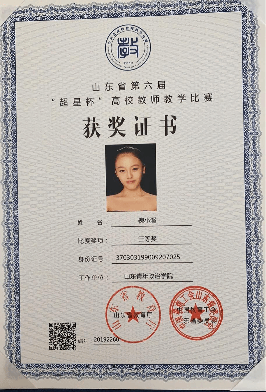 槐小溪荣获山东省第六届“超星杯”高校青年教师教学比赛优秀奖