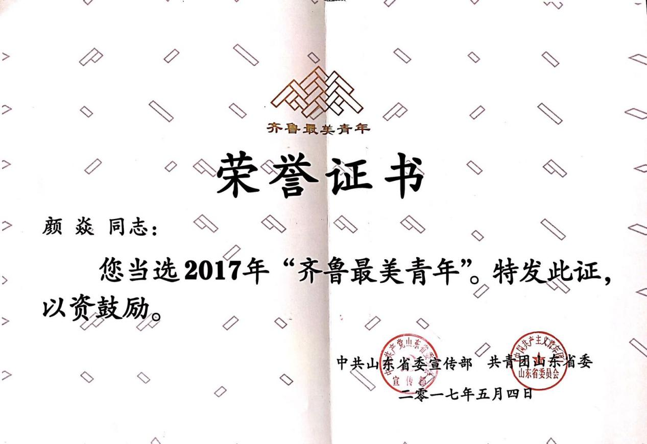 颜焱当选2017年度“齐鲁最美青年”