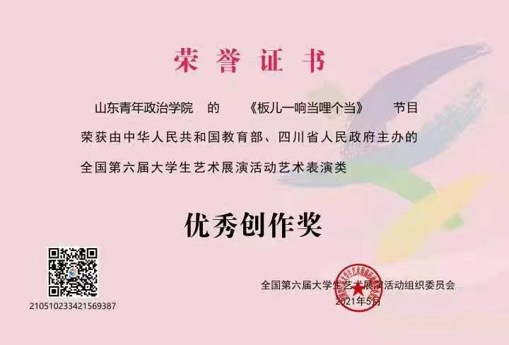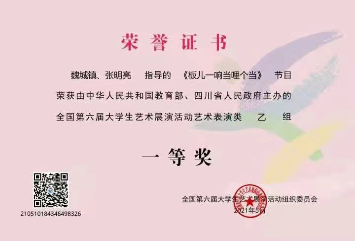 舞蹈《板儿一响当哩个当》获全国第六届大学生艺术展演活动艺术表演类乙组一等奖、优秀创作奖