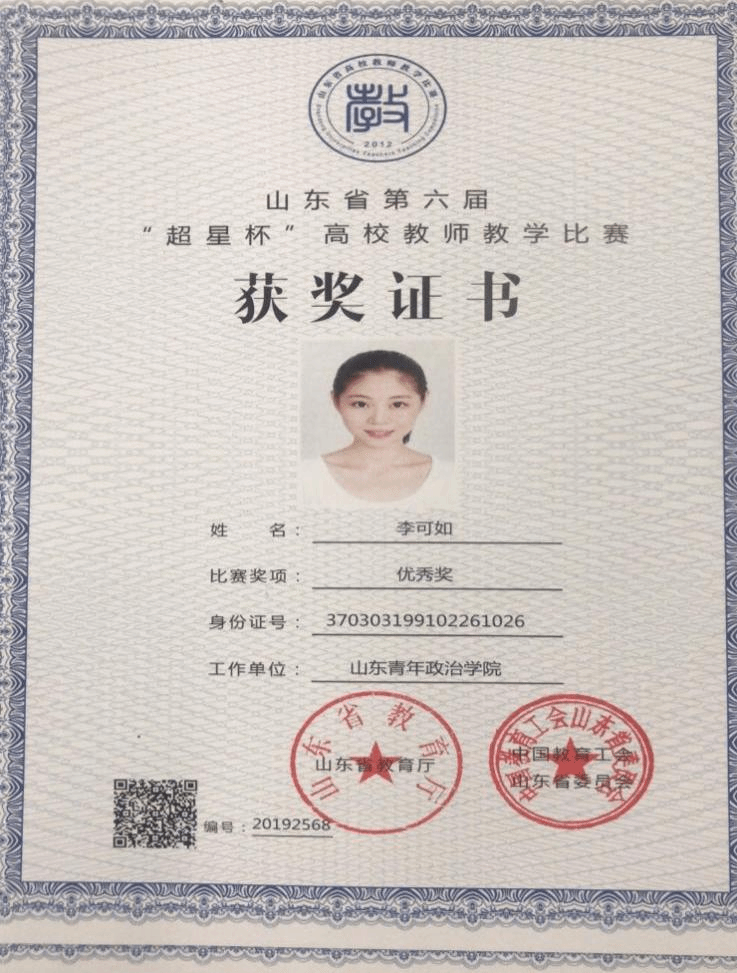 李可如荣获山东省第六届“超星杯”高校青年教师教学比赛优秀奖