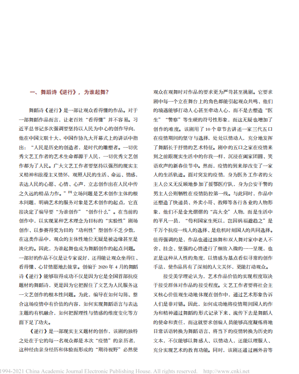 舞蹈诗《逆行》的精神内涵及艺术特质 山东艺术